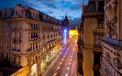 Hotel Bristol Palace is an elegant Art Nouveau building, one of the best known hotels of Genoa. Since the early twentieth century it has been the heart of cultural life of the city during the Belle Epoque; it hosted parties and banquets of the high society, and today, thanks to a careful restoration work, it has returned to its former glory with precious antique furniture. It is located in the heart of Genoa, close to the Doge’s Palace, the Carlo Felice Opera Theatre and the most significant museums and historical buildings. It is perfectly positioned for anyone wishing to get to the Old Port where, the Genoa Aquarium, the Galata Sea museum and the Children's City are located. During its recent renovation its elegance and exclusiveness were blended with a modern and functional conception of the services. A dramatic elliptical staircase in white and Liberty wrought-iron banister soars up to the top floor in a spectacular spiral that seems to be suspended in space. It is said that the staircase inspired Alfred Hitchcock, who was a frequent guest, and featured it in his film "Vertigo".