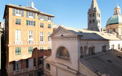 Le Nuvole Hotel is the only 3-star hotel that our congress housing agency is proposing to the Conference delegates. It is located on the 4th floor of the historical Palazzo Lamba Doria, right at the back of Palazzo Grillo hotel and it shares the same terrace of Palazzo Grillo for breakfast. It offers 15 modern rooms with original stuccos, very high ceilings and windows overlooking a church dating from 1700.